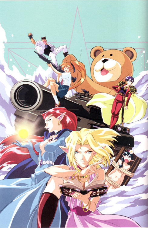 Mi primer contacto con el arte de Keiji Gotoh fue un pequeño booklet adjunto a una revista Newtype que compre, en este se mostraban algunos sketches de su trabajo como diseñador de personajes, así que cuando vi un libro de ilustraciones no medite mucho el comprarlo, aunque no conociera más que a los personajes de Nadesico, tiempo después aparecería en Locomotion Those Who Hunt Elves, serie en la que también participó y que me gusta bastante. Gran parte de este libro y como el subtítulo lo indica está dedicado a Nadesico, y sobre todo a Ruri, vienen también ilustraciones de Those Who Hunt Elves, Bakuretsu Hunter, Hyperpolice, Double Cast (Videojuego) y varios pinups de chicas que no pertenecen a ninguna serie. En blanco y negro trae dos pequeños comics sobre Nadesico, 2 páginas con sketches del diseño de personajes y un listado de las ilustraciones con fechas y propósito de realización. Su precio en yenes es de 1886.00, pero aquí en México tenemos suerte cuando adquirimos libros un poco por debajo del doble de su precio original. Olvidaba que también trae dos pequeños posters de Ruri del doble del tamaño de una página normal.