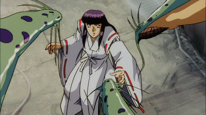 De mi pila de cosas por ver viene esta película, que tiene como antecedentes algunos mangas que compre hace tres lustros y la serie que trasmitió Locomotion en sus buenos tiempos, pero y de que va esto. Silent Möbius es la historia de un equipo policiaco formado por mujeres que se dedican a combatir a entidades extra dimensionales de apariencia insecto-demoniaca, ¿y cómo los combaten?, con magia y tecnología a veces con más magia que tecnología. La historia se desarrolla en una futurista ciudad de Tokyo bastante inspirada por Blade Runner, y puedo decir que el arte es una de las cosas que más me gustaron de esta película, el diseño de personajes es bueno, pero la ciudad y su paleta de colores me parecieron fantásticos, hace bastante tiempo que no disfrutaba tanto el aspecto visual de un anime, a este en particular ya se le ve un poco la edad pero aun así ha envejecido muy bien y creo que muchas animaciones actuales desearían tener la calidad técnica y visual de este filme.
